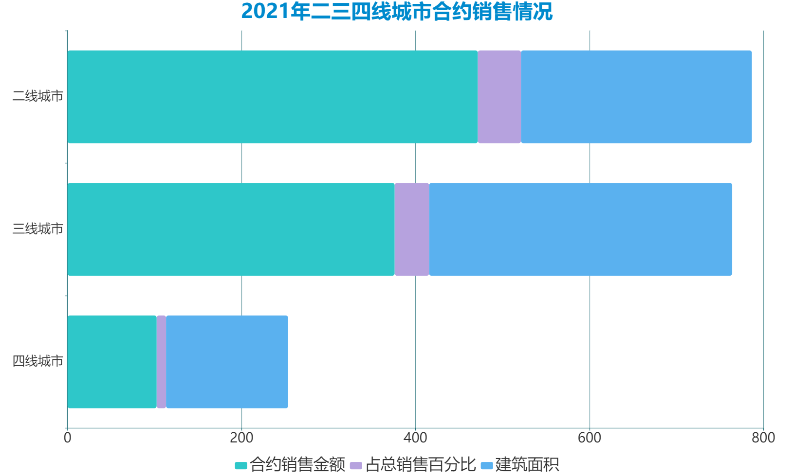 2019-2020年,中梁控股在三四線城市分別擁有313個、325個項目,占總項目的比重均在68%左右;二線城市銷售金額占比有了較為顯著的提升,接近46%,四線城市銷售金額占比則下降為10.2%;二線城市項目數(shù)量上升至155個,三線城市項目數(shù)量則為245個,四線城市項目數(shù)量下降為80個。
