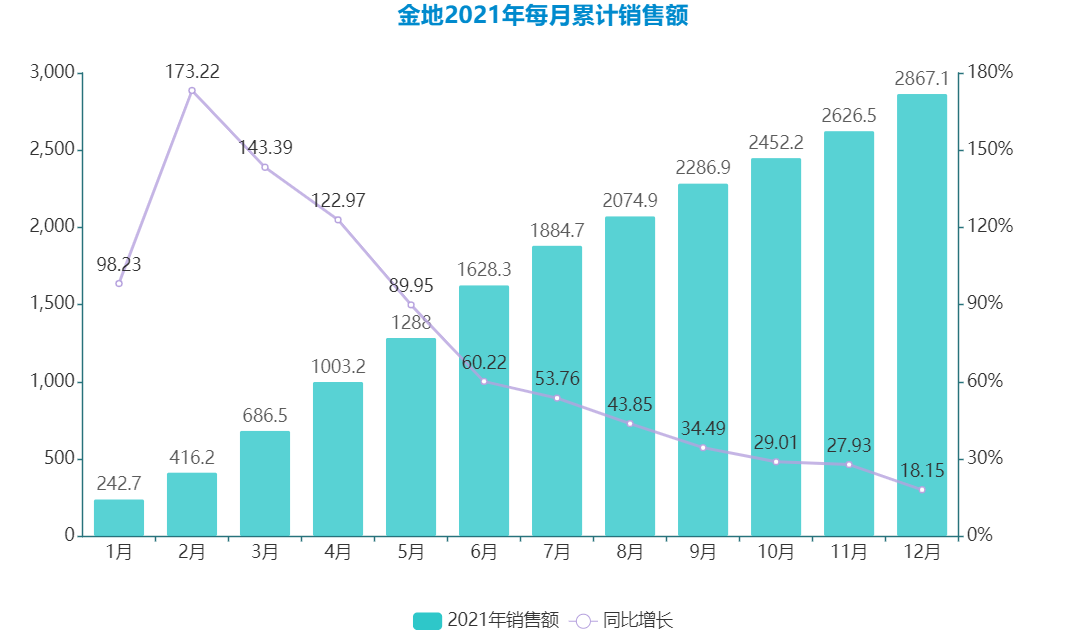 值得一提的是,2021年,金地是少數(shù)幾家完成全年銷售目標(biāo)的房企,銷售增速基本保持穩(wěn)定。