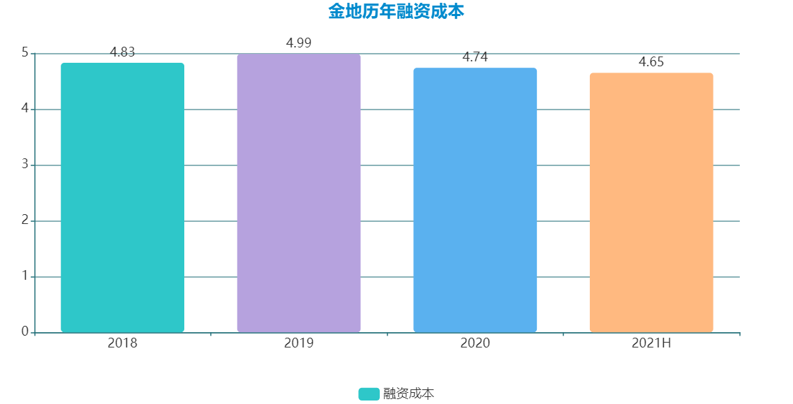 融資成本方面,從2019年的4.99%降至2020年的4.74%,再降至2021年的4.65%。