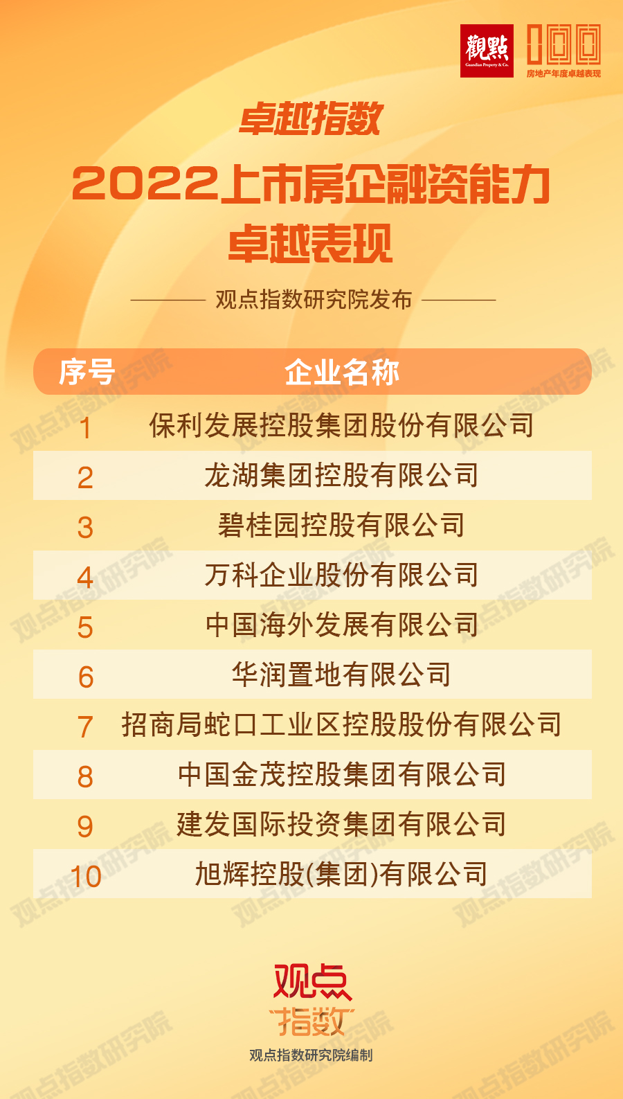 觀點(diǎn)指數(shù) 在“2022上市房企融資能力卓越表現(xiàn)”中,保利發(fā)展和龍湖集團(tuán)居前,前者的優(yōu)勢(shì)在于融資渠道暢通,資金充裕助力逆周期擴(kuò)張。