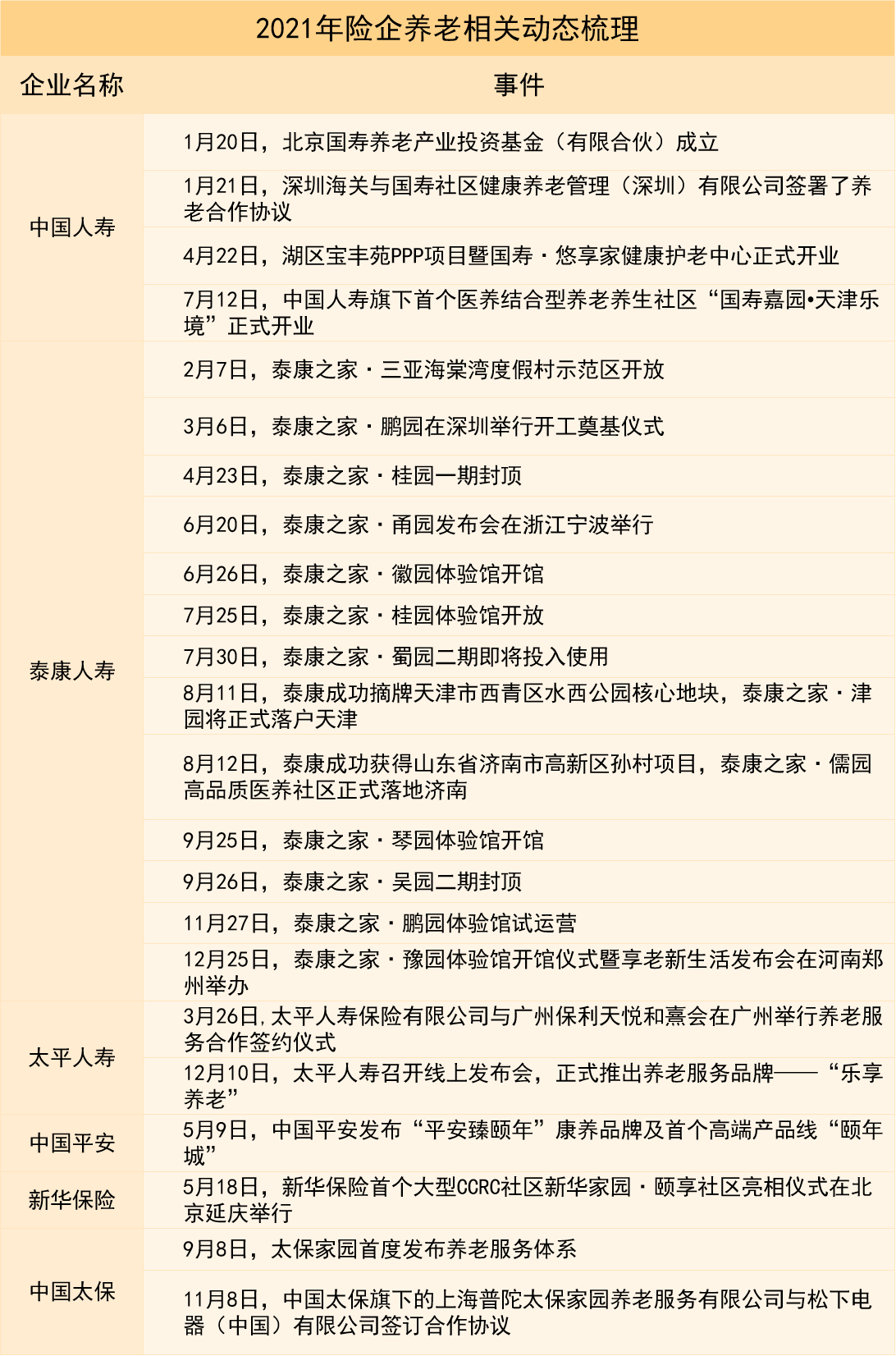 據(jù)中國保險資產(chǎn)管理業(yè)協(xié)會介紹,截至2021年11月,保險機構(gòu)在全國34個城市布局養(yǎng)老產(chǎn)業(yè),累計提供超過13萬張床位,國內(nèi)布局養(yǎng)老的人身險公司比例達(dá)47%。