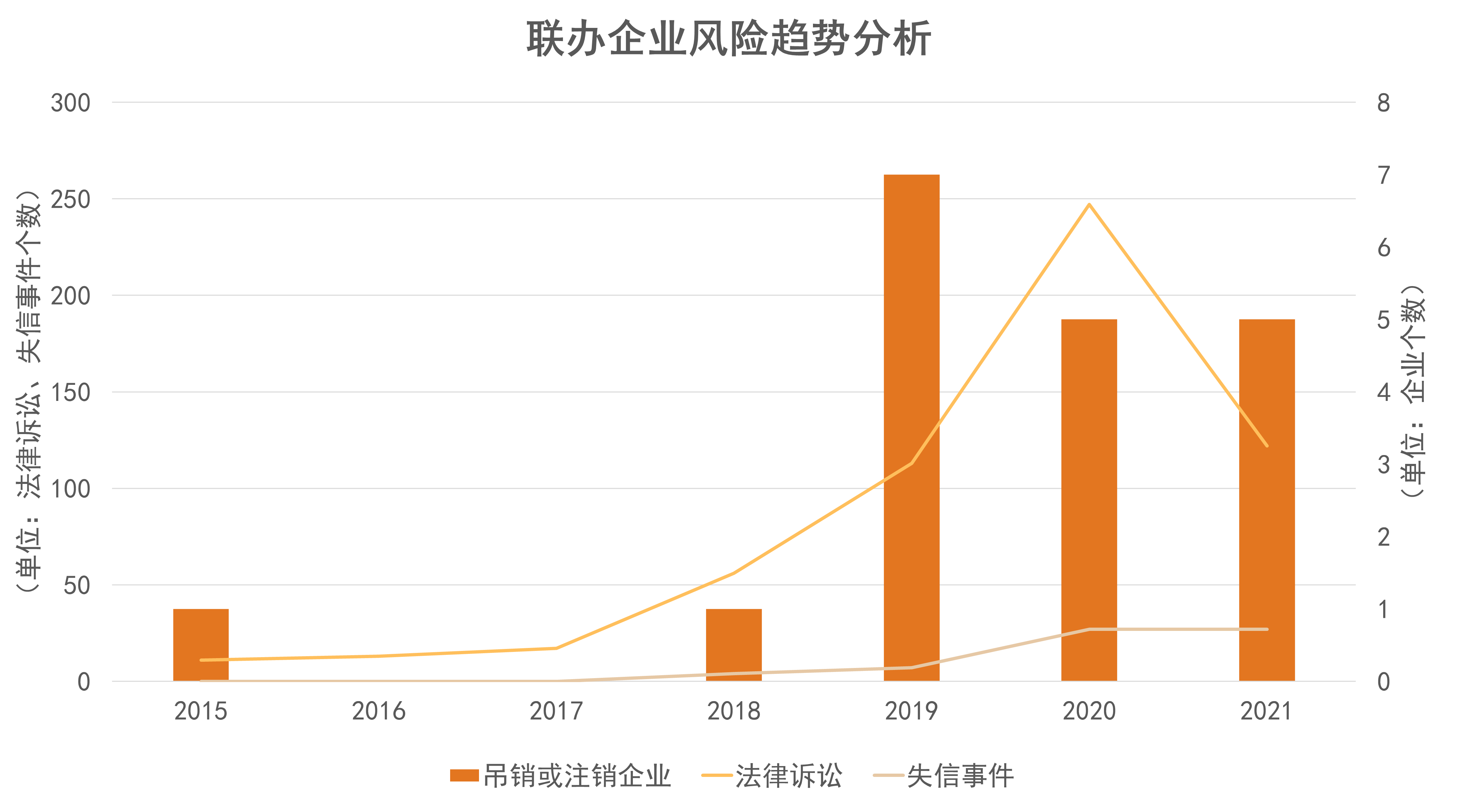企業(yè)停業(yè)和法律訴訟事件分別在2019和2020年達(dá)到頂峰,2021年均呈現(xiàn)收斂狀態(tài)。市場(chǎng)出清仍在進(jìn)行,上一個(gè)周期積累的風(fēng)險(xiǎn)依舊在釋放。
