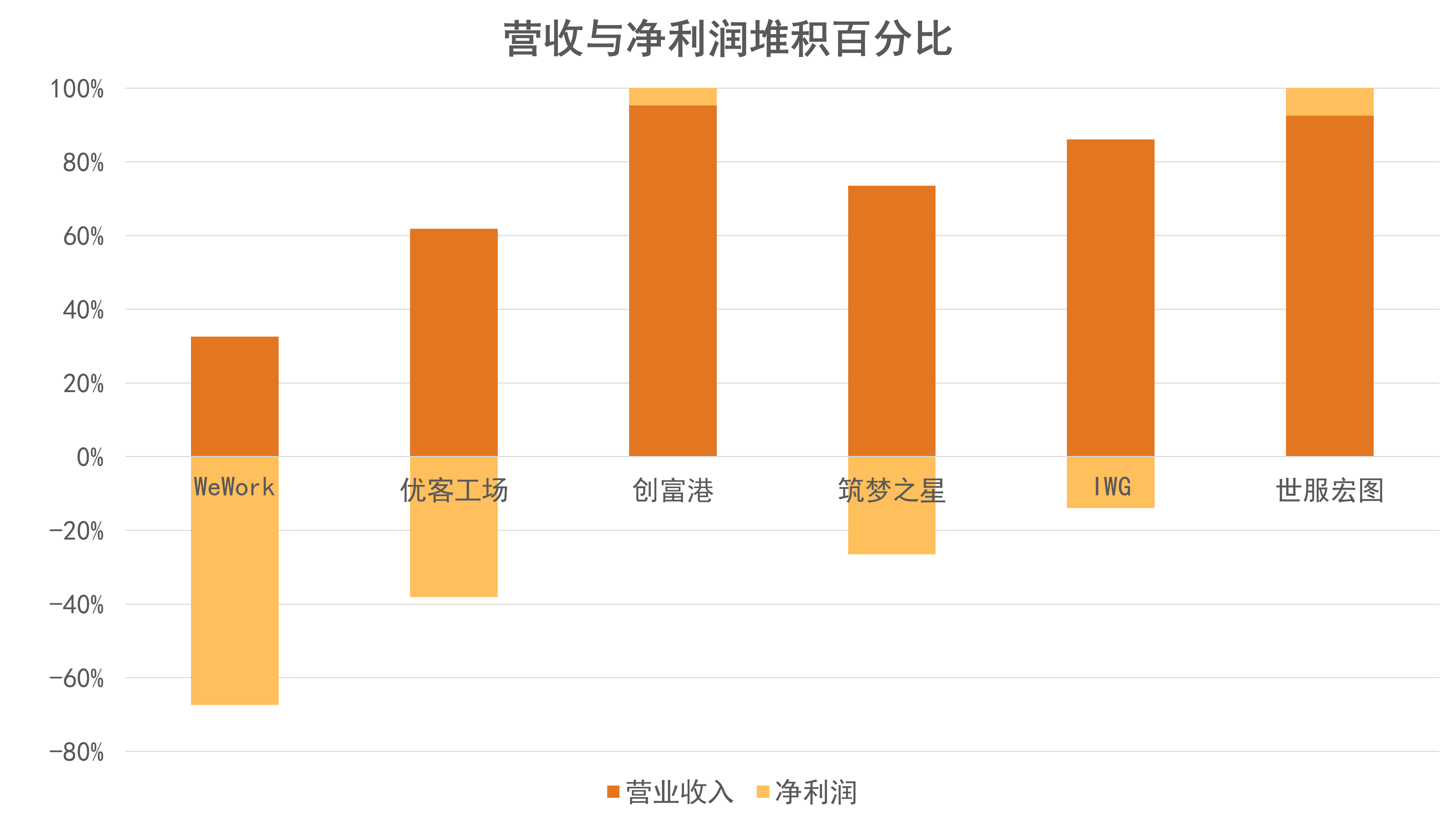 盡管WeWork全球范圍內(nèi)營(yíng)收遙遙領(lǐng)先,但凈利潤(rùn)背離程度也是意外地高,凈虧損率達(dá)到172.72%。