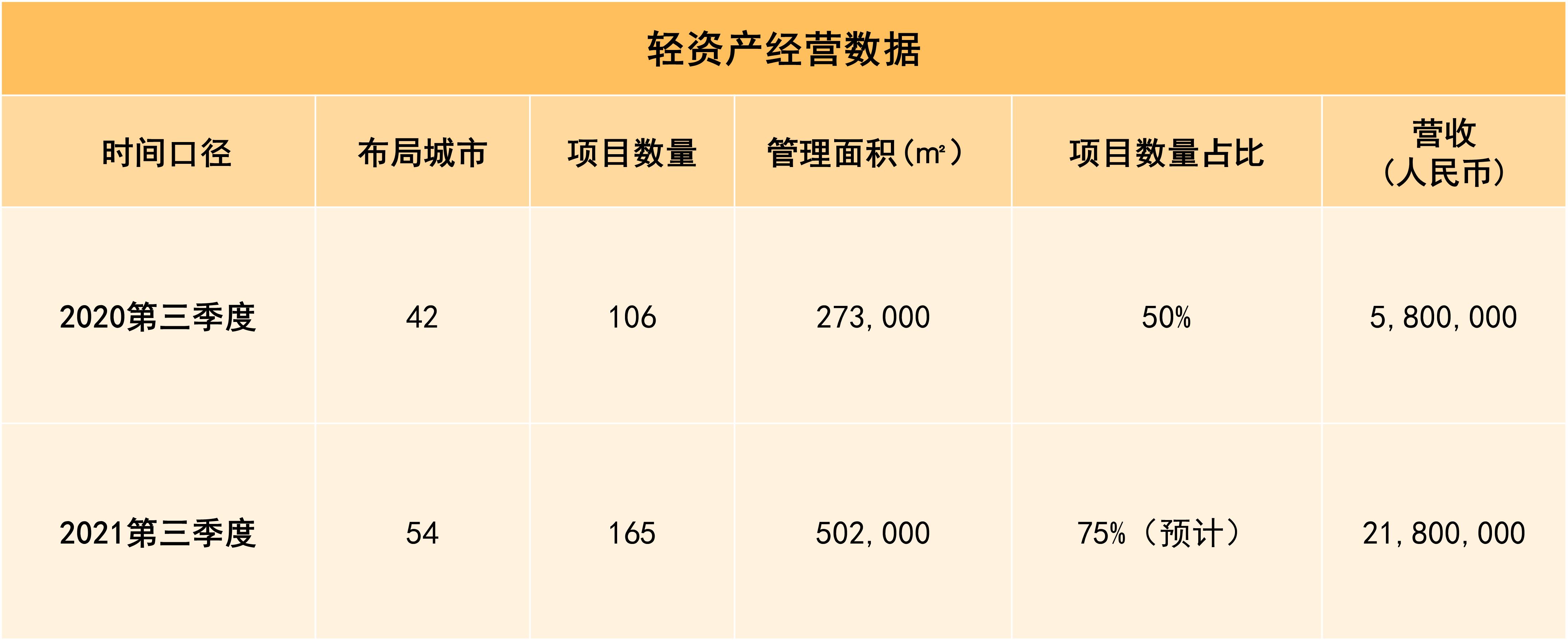 2021年,優(yōu)客工場(chǎng)運(yùn)營(yíng)資產(chǎn)輕重比預(yù)計(jì)會(huì)達(dá)到3:1。