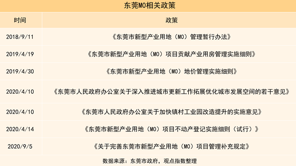 典型例子是在2018年9月印發(fā)國內(nèi)第一份M0管理辦法——《東莞市新型產(chǎn)業(yè)用地(M0)管理暫行辦法》的東莞,當?shù)鼐驮?jīng)歷過多次政策調(diào)整。