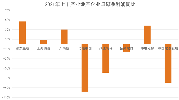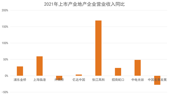 營業(yè)收入表現(xiàn)上,觀點指數(shù)監(jiān)測的8家產(chǎn)業(yè)地產(chǎn)樣本上市企業(yè)數(shù)據(jù)顯示,2021年度實現(xiàn)營收正向增長的有浦東金橋、上海臨港、億達中國、張江高科、招商蛇口和中電光谷。
