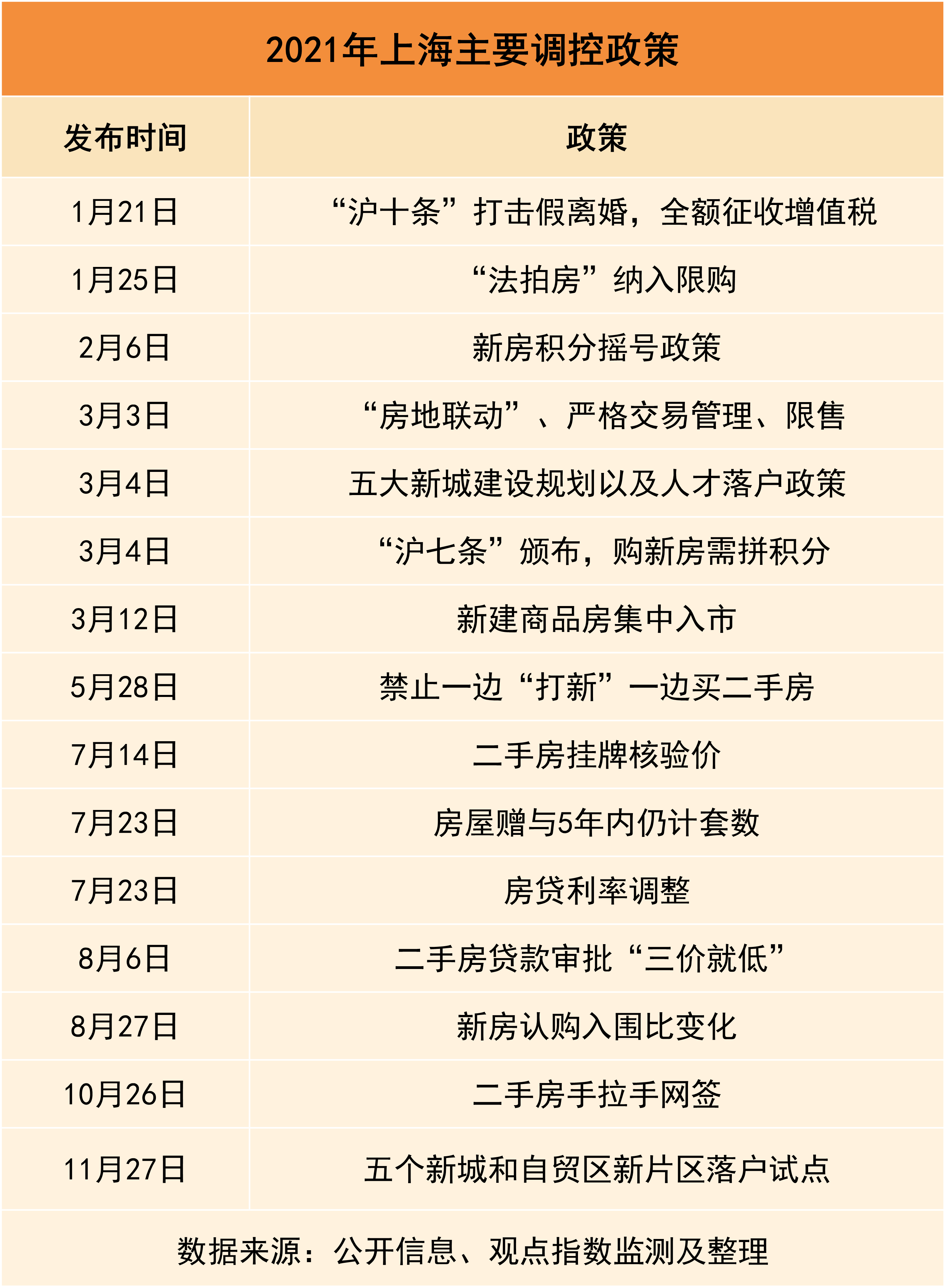 2021年是樓市調(diào)控大年,1月21日,以“滬十條”為起點(diǎn),拉開了調(diào)控序幕,此后上海接連出臺新政降低房地產(chǎn)市場熱度,調(diào)控范圍從新房市場延伸至二手房市場,覆蓋法拍房、贈與房、學(xué)區(qū)房等新興熱點(diǎn)領(lǐng)域。