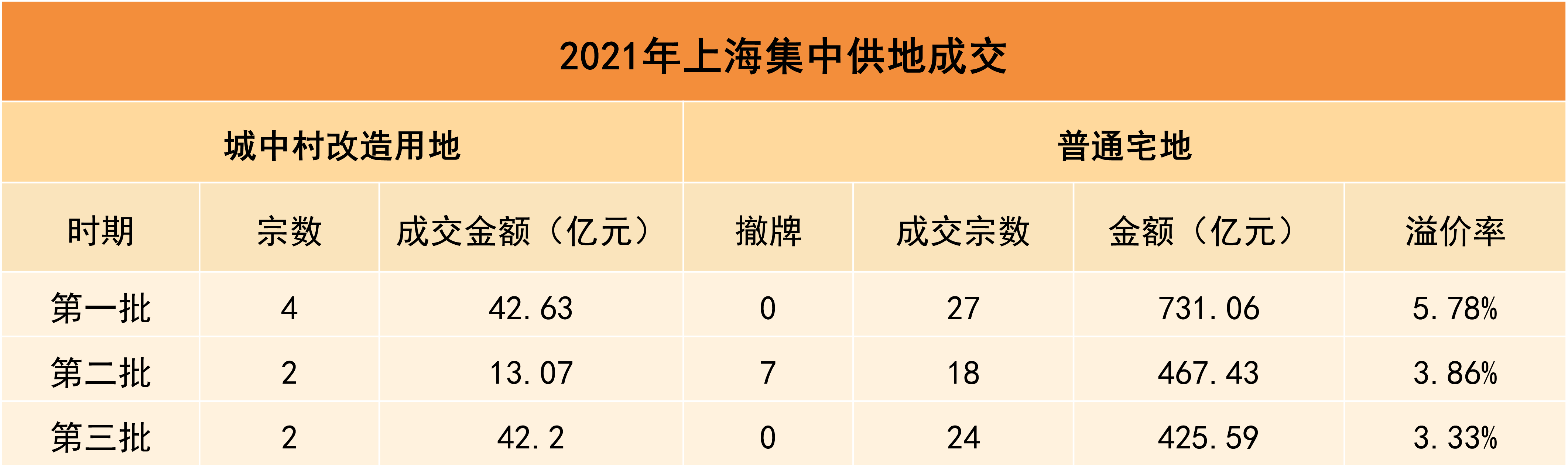 2021年上海開始實行集中供地政策,圍繞“穩(wěn)房價、穩(wěn)地價、穩(wěn)預(yù)期”制定了集中供地土拍規(guī)則,改變了過去價高者得的模式。三個批次集中供地?zé)岫惹案吆蟮?,溢價率逐步走低,土拍市場健康發(fā)展。