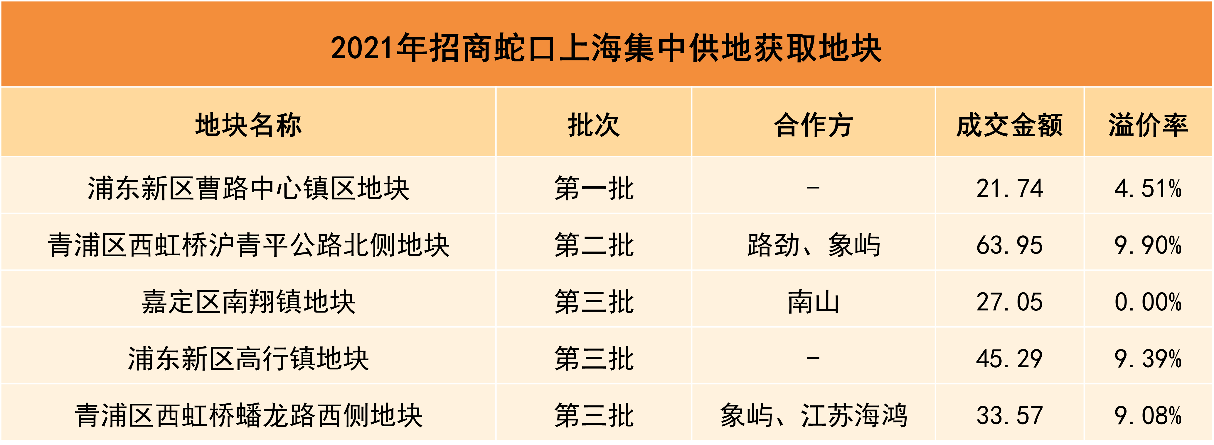 在2021年上海集中供地中,共有三個企業(yè)全口徑拿地金額過百。其中招商在集中供地上共摘下5宗地塊,三個批次均有斬獲,其中3宗是聯(lián)合拿地,2宗獨(dú)立獲取,總拿地金額為191.6億元。