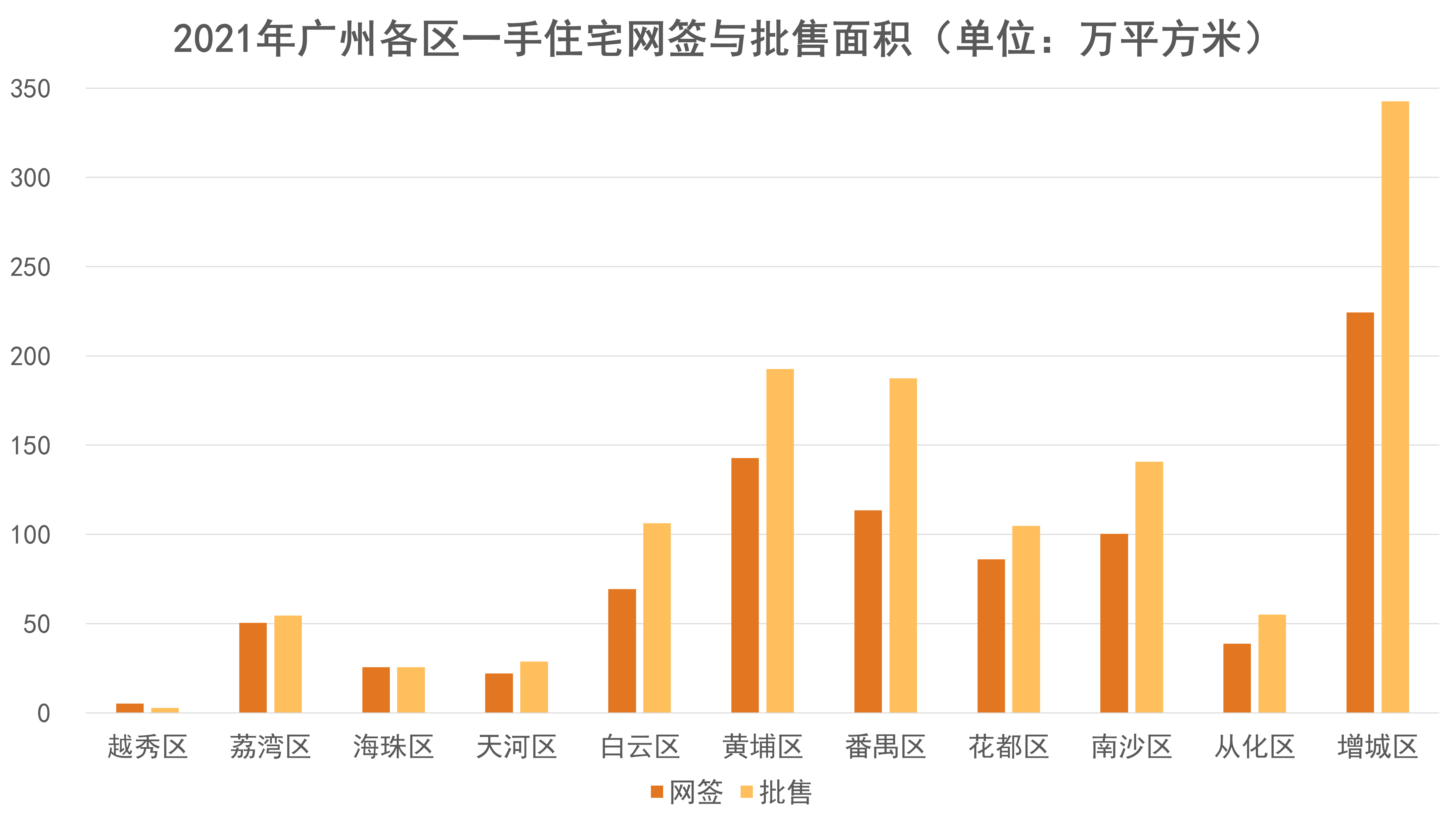 據(jù)觀點(diǎn)指數(shù)監(jiān)測,2021年廣州全年新建商品住宅網(wǎng)簽11.48萬套,同比上升2.94%;網(wǎng)簽面積1238.01萬平方米,同比上升4.28%。盡管下半年熱度有一定程度下降,但全年網(wǎng)簽水平仍高于2020年,創(chuàng)出新高;增城仍是最主要的成交區(qū)域,而黃埔則次之。