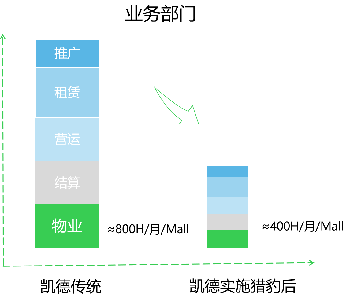 以凱德資產(chǎn)管理平臺“獵豹”為例,通過系統(tǒng)內(nèi)置的SOP及標準,實現(xiàn)業(yè)務(wù)線上化,并在各個環(huán)節(jié)設(shè)計了監(jiān)管及預(yù)警機制,確保執(zhí)行落地,提高了業(yè)務(wù)部門50%的工作效率。