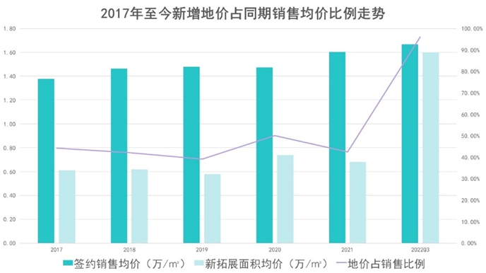 據(jù)觀點(diǎn)新媒體觀察,2022年3季度,保利發(fā)展新增土地均價(jià)占同期銷(xiāo)售均價(jià)的比例為96%,往年該項(xiàng)數(shù)據(jù)均保持著45%上下的水平。這項(xiàng)數(shù)據(jù)的快速上升,也與新增土儲(chǔ)集中在一二線(xiàn)城市有關(guān),未來(lái)將對(duì)企業(yè)盈利優(yōu)化有較大影響。
