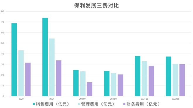 對(duì)比2021年,保利發(fā)展彼時(shí)財(cái)務(wù)費(fèi)用增幅只有7.38%,為33.86億元,好在該項(xiàng)數(shù)據(jù)在2022年第三季度得到修復(fù)。三季度財(cái)報(bào)中,保利財(cái)費(fèi)增速由半年報(bào)近56%修復(fù)至6.24%,至30.29億元。