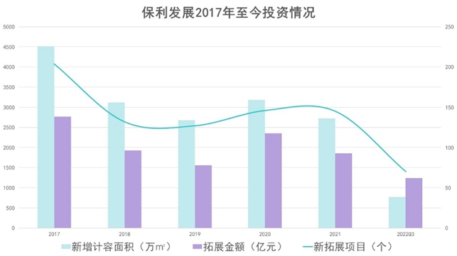 進(jìn)入2022年三季度,保利發(fā)展繼續(xù)加大投資,新拓展項(xiàng)目33個(gè),新增容積率面積359萬(wàn)平方米,總拓展成本628億元,擴(kuò)展投資均價(jià)為17493元每平方米,較上一期增加18.73%。