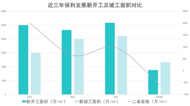 在積極擴(kuò)儲(chǔ)的同時(shí),市場(chǎng)低迷態(tài)勢(shì)尚未得到有效扭轉(zhuǎn),保利發(fā)展也在放緩自身開(kāi)工面積,緊抓去庫(kù)存。