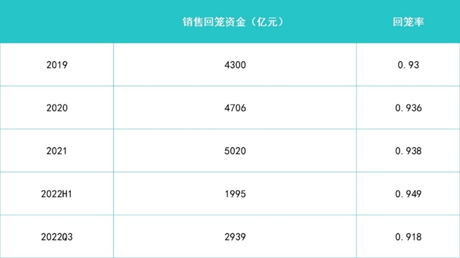 數(shù)據(jù)顯示,保利發(fā)展2022年上半年銷(xiāo)售回籠率為94.90%,為近三年最高值;同年三季度該項(xiàng)數(shù)據(jù)回落至91.80%,回籠資金2939億元,仍好于2021年同期2.3個(gè)百分點(diǎn)。