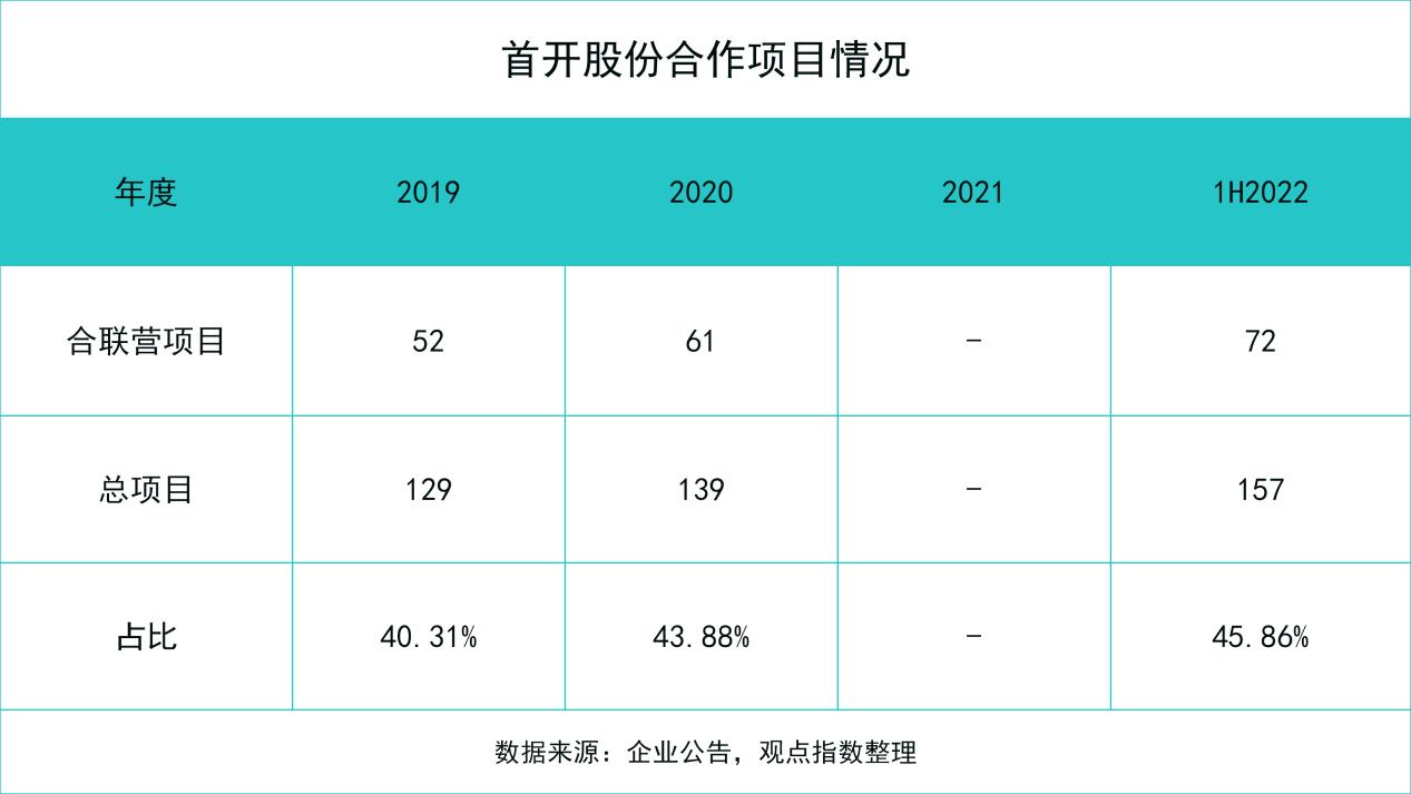 據(jù)披露,2019-2020年期間,首開股份合聯(lián)營項目從52個增至61個,占項目總數(shù)比例也從40.31%提升至43.88%。