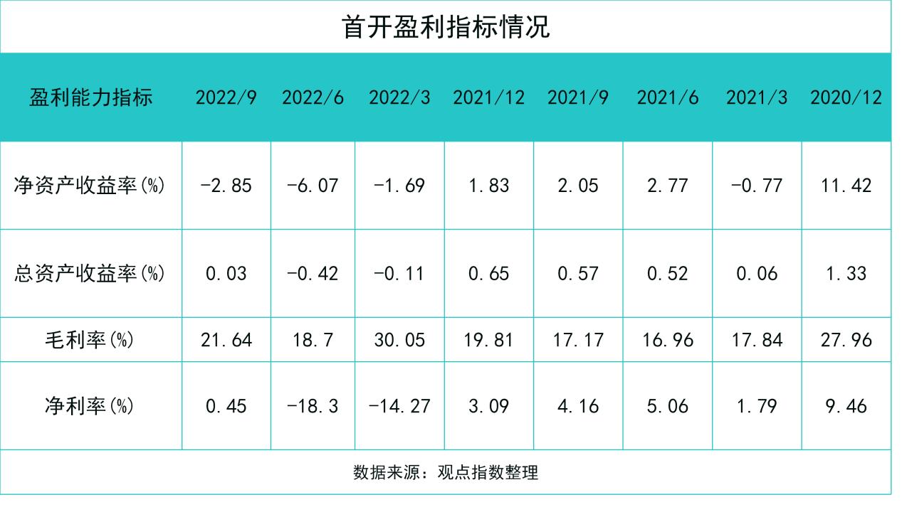 其中凈資產(chǎn)收益率和凈利率回調(diào)程度較大,前者由2020年底的11.42%下降至-2.85%。同期間內(nèi),后者由9.46%下滑至0.45%。而2022年,凈利率與往期數(shù)據(jù)對比差異也比較大。