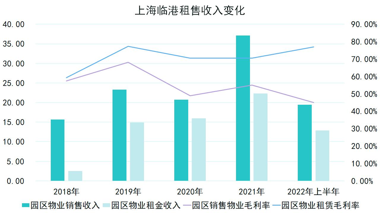 截至上半年,上海臨港園區(qū)物業(yè)簽約銷(xiāo)售面積5.3萬(wàn)平方米,園區(qū)物業(yè)銷(xiāo)售收入19.46億元,同比下跌11.48%,園區(qū)銷(xiāo)售物業(yè)毛利率45.03%;園區(qū)物業(yè)租金收入12.89億元,上漲24.88%,園區(qū)物業(yè)租賃毛利率77.05%。