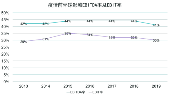 盈利水平方面,康卡斯特主題公園板塊2020年受疫情影響調(diào)整后折舊攤銷后利潤(rùn)(EBITDA)虧損,從2013-2019年表現(xiàn)來(lái)看,調(diào)整后EBITDA率維持在40%-45%之間,2017年開(kāi)始逐年下滑,若考慮折舊與攤銷,盈利水平基本在30%-35%之間。