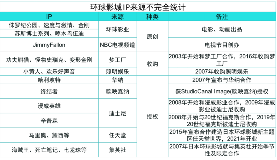 環(huán)球影城通過(guò)自制、收購(gòu)、授權(quán)三條途徑,打造了一個(gè)強(qiáng)大且靈活多樣的IP體系。除原創(chuàng)自制IP外,收購(gòu)IP主要來(lái)自夢(mèng)工廠和照明娛樂(lè),包括功夫熊貓、變形金剛、小黃人等等;授權(quán)IP基本來(lái)自迪士尼、華納等,包括著名的哈利波特系列、漫威英雄系列、辛普森等等。