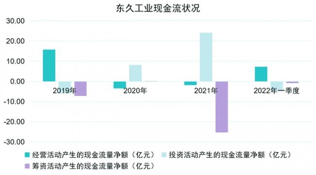 2022年一季度,東久實(shí)現(xiàn)經(jīng)營活動現(xiàn)金流量凈額為7.22億元,實(shí)現(xiàn)投資活動產(chǎn)生的現(xiàn)金流量凈額為-4.80億元,實(shí)現(xiàn)籌資活動產(chǎn)生的現(xiàn)金流量凈額為-0.85億元。流出現(xiàn)金除了用于分配股利、利潤或償付利息外,主要用于新增的各類型投資,達(dá)到4.35億元。