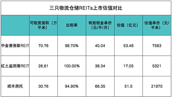 以順豐房托及中金普洛斯REIT、紅土鹽田港REIT為例,3只倉儲物流REITs上市時底層資產(chǎn)均位于京津冀、長三角及粵港澳大灣區(qū)等核心商圈,占據(jù)了核心物流樞紐,其中部分地區(qū)近年來鮮有出讓倉儲用地,潛在價值均較大。