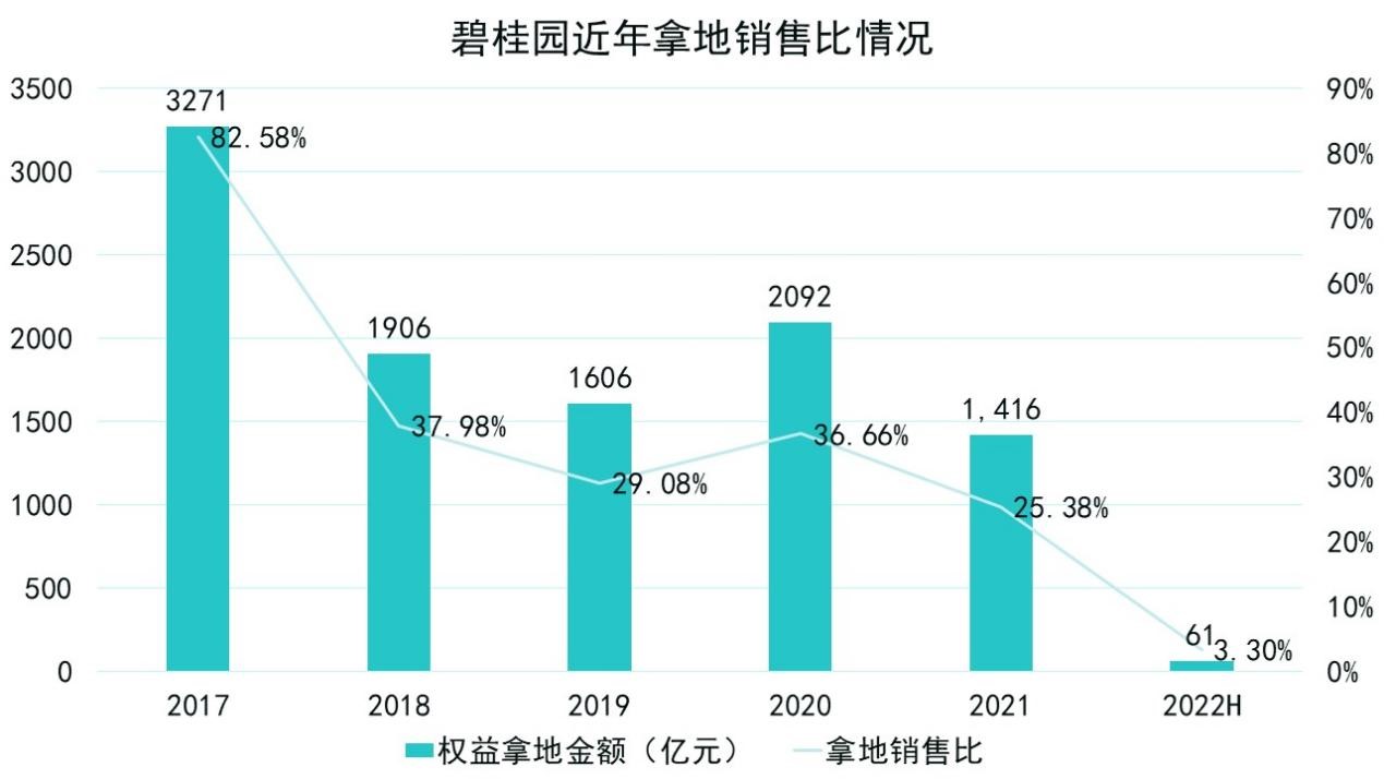 2022上半年,碧桂園分別在佛山、張家口、蘭州等地獲取低溢價率地塊,共計9個項目,拿地權益金額60.9億元。