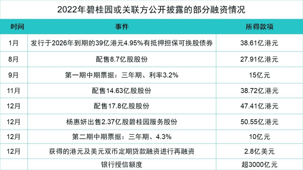 碧桂園進而轉向可轉債、配售、出售碧桂園服務股份等方式,圍繞上市平臺股權操作獲取境外融資,合計所得款項達203.2億港元。