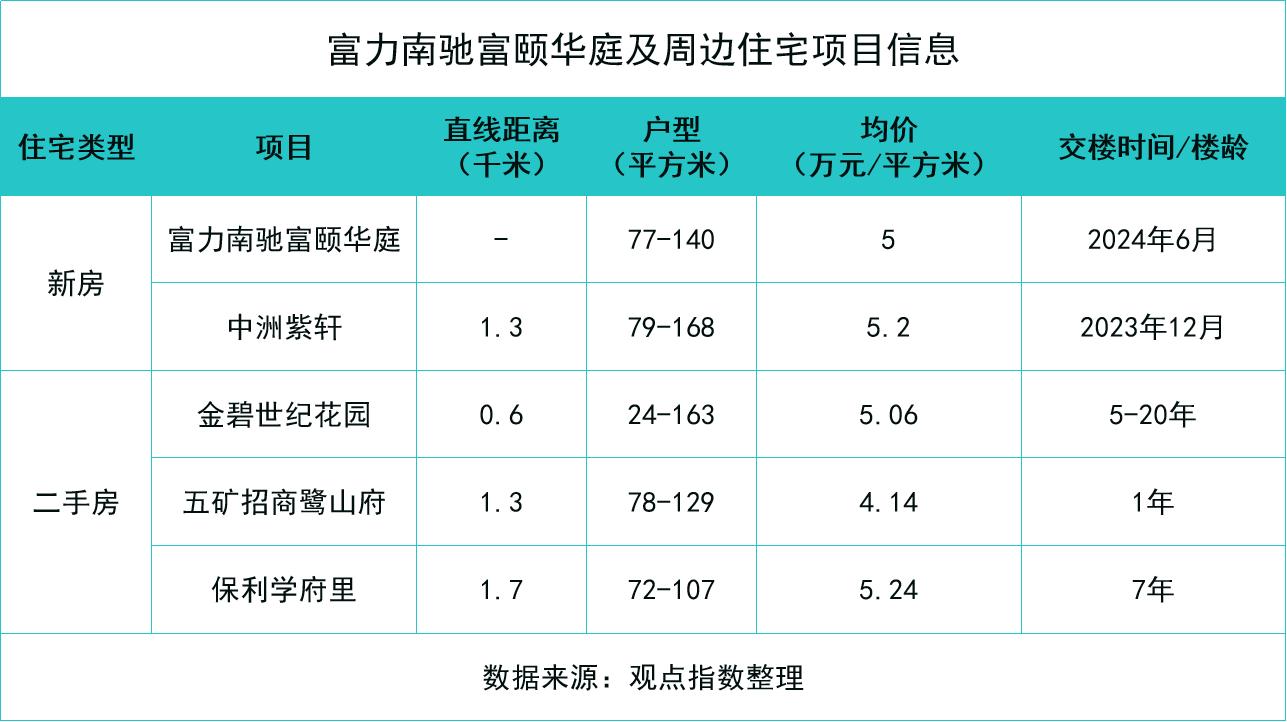 由此可見,富力南馳富頤華庭目前定價處于較低水平,較周邊房源具備競爭力。