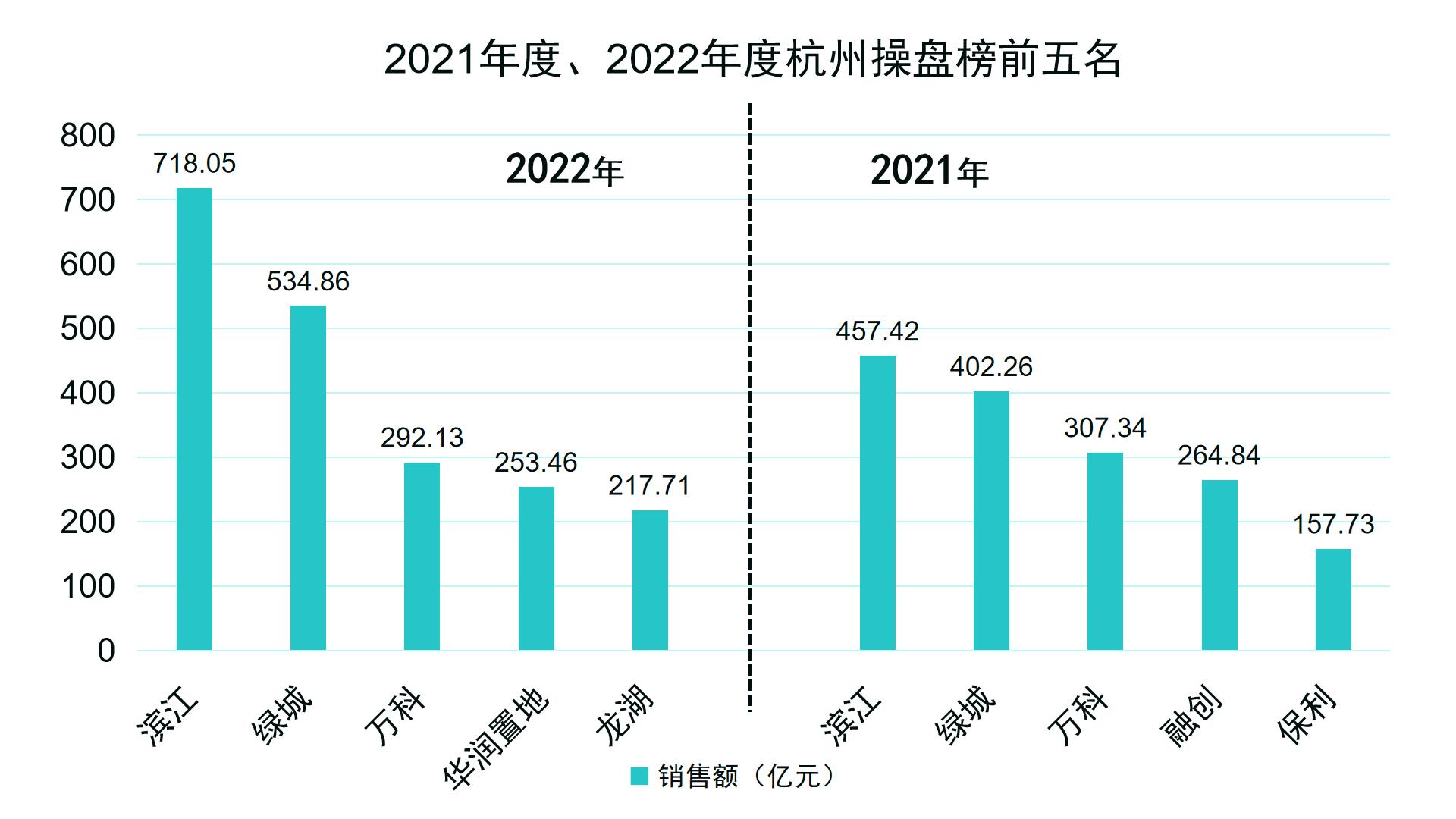 據(jù)透明售房網(wǎng),在2022年度杭州操盤(pán)榜中,濱江集團(tuán)分別以網(wǎng)簽金額718.05億元和565.21億元,繼續(xù)蟬聯(lián)杭州地區(qū)銷(xiāo)售操盤(pán)榜和權(quán)益榜雙料冠軍,這也是濱江第5年奪得杭州銷(xiāo)售榜首位。