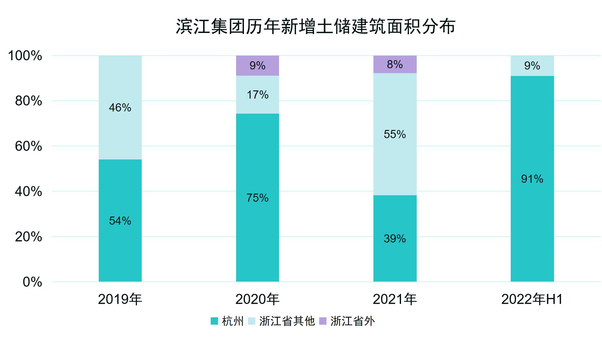 最終結(jié)果卻是,在濱江2022年拿下的41宗塊中,杭州占據(jù)了38宗,剩余3宗位于浙江省內(nèi),沒(méi)有地塊位于省外。