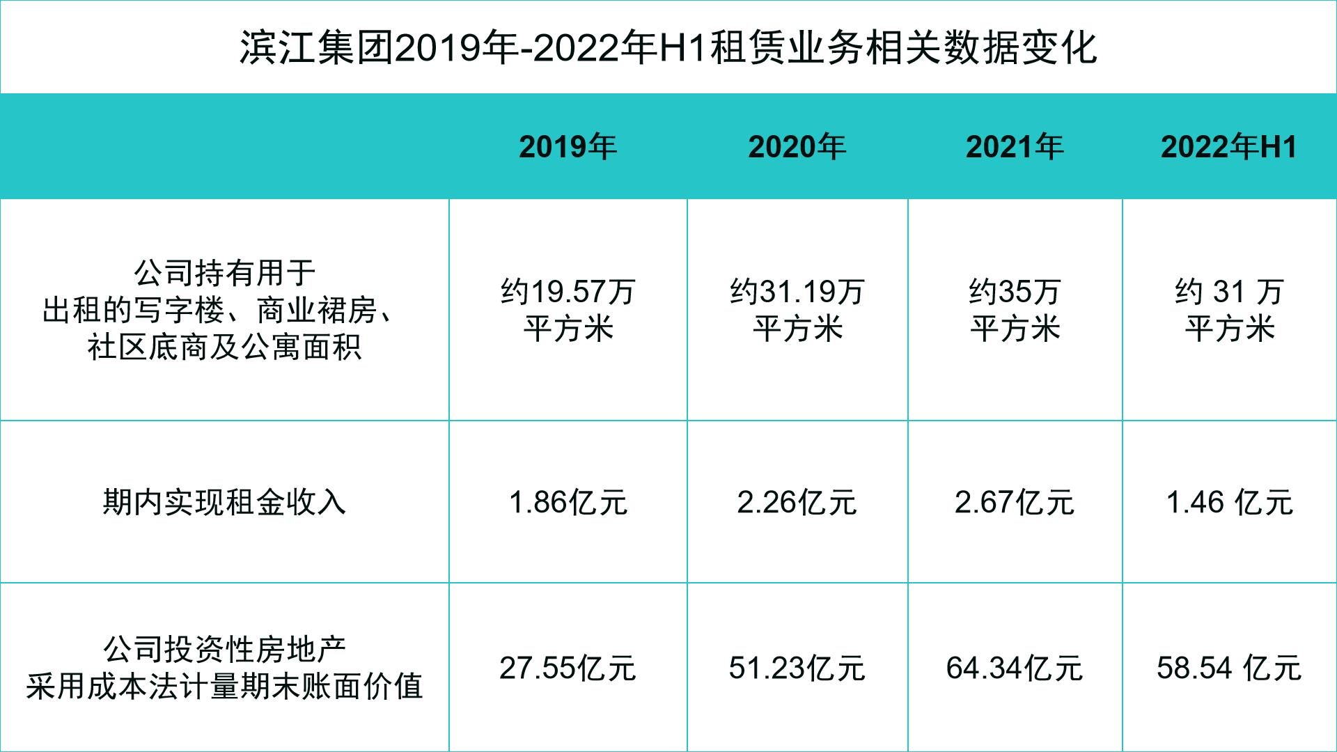 截至2022年上半年,濱江集團(tuán)持有用于出租的寫(xiě)字樓、商業(yè)裙房、社區(qū)底商及公寓面積約31萬(wàn)平方米,實(shí)現(xiàn)租金收入1.46億元;投資性房地產(chǎn)采用成本法計(jì)量,期末賬面價(jià)值58.44億元。