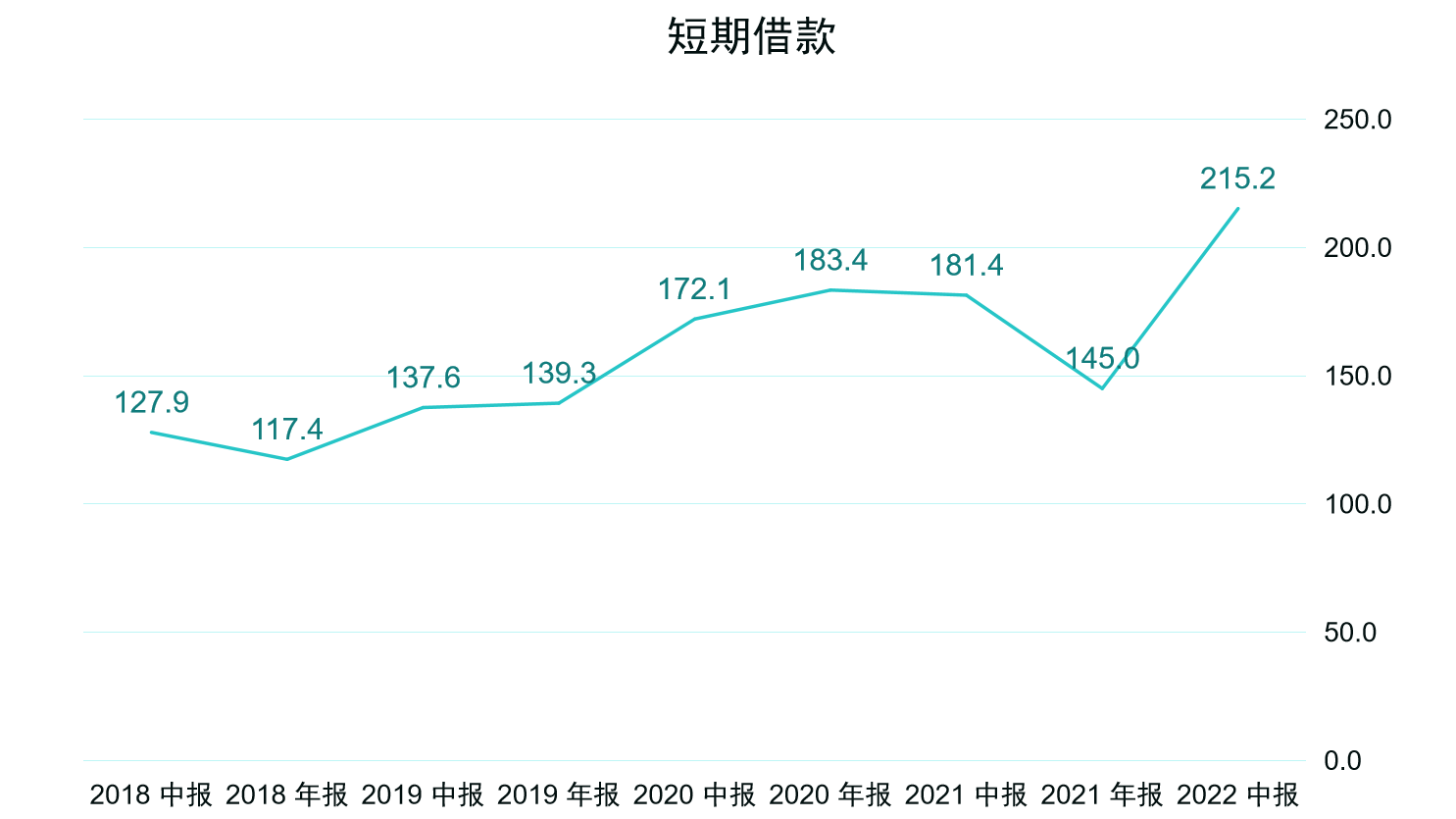 從來都努力維持界限的短期借款陡然升高,現(xiàn)金及等價(jià)物盡力保持,經(jīng)營性現(xiàn)金流從2021年上半年96億元減少至2022年上半年42億元。