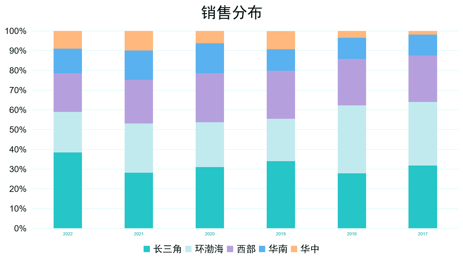 拿地布局或能有所解釋,龍湖2022年在合肥、上海、杭州為主的長三角拿地較多,每月公布的土儲(chǔ)數(shù)據(jù)中,長三角占比達(dá)59%。