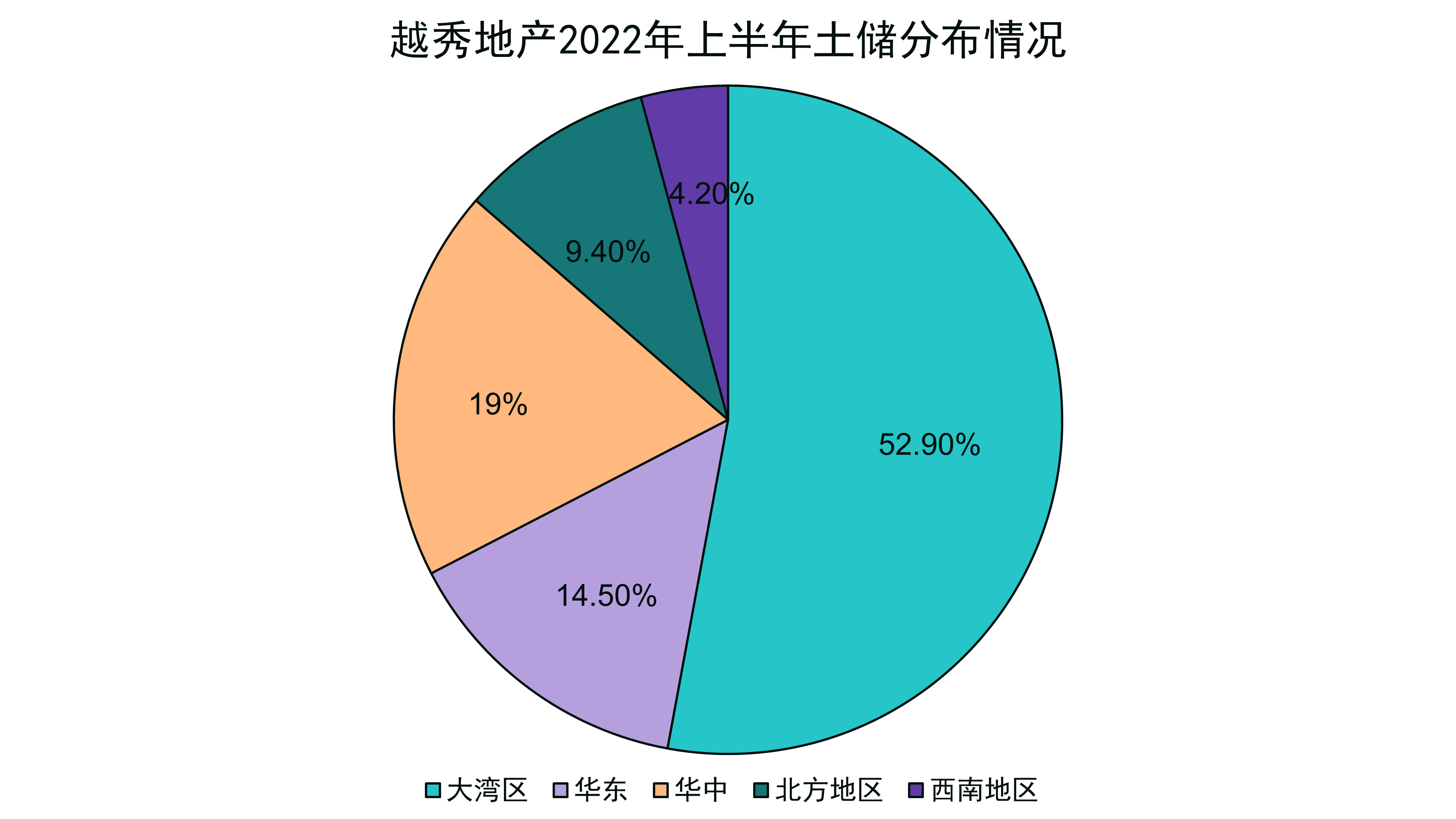 在“1+4”全國(guó)化布局戰(zhàn)略下,除了大灣區(qū)以外,越秀地產(chǎn)也在繼續(xù)拓展華東地區(qū)、華中地區(qū)、北方地區(qū)和西南地區(qū),截至2022年中期,上述地區(qū)土儲(chǔ)占比分別為14.5%、19%、9.4%、4.2%。