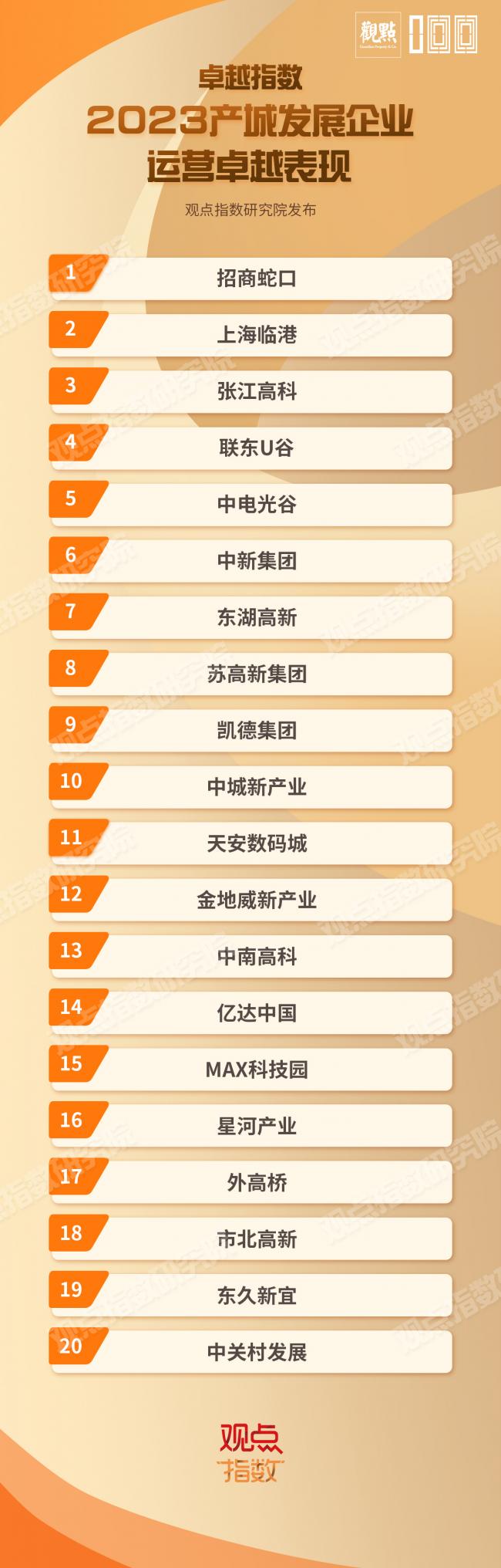 以下為其中的《2023產(chǎn)城發(fā)展企業(yè)運(yùn)營(yíng)卓越表現(xiàn)》及研究成果,更多請(qǐng)點(diǎn)擊2023觀(guān)點(diǎn)房地產(chǎn)卓越指數(shù) - 觀(guān)點(diǎn)網(wǎng) (guandian.cn)