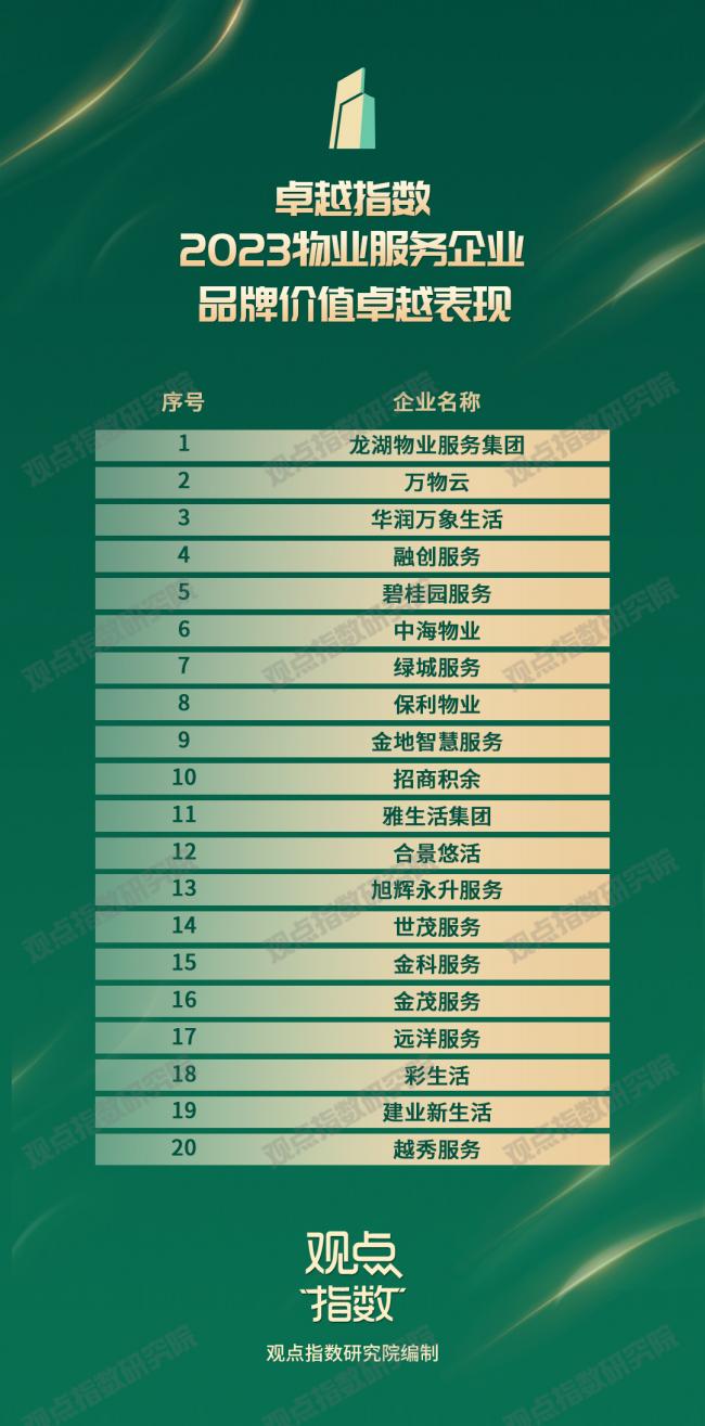 以下為《2023 物業(yè)服務(wù)企業(yè)品牌價(jià)值卓越表現(xiàn)報(bào)告》及研究成果,更多請(qǐng)點(diǎn)擊2023觀點(diǎn)物業(yè)卓越指數(shù) - 觀點(diǎn)網(wǎng) (guandian.cn)閱讀。