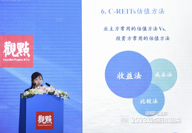 我們現(xiàn)在碰到的很多問(wèn)題,可能是業(yè)主方或者不動(dòng)產(chǎn)投資人,之前有做一些PE的基金,現(xiàn)在要退出,遇到很多問(wèn)題都是圍繞估值來(lái)的,REITs給到的估值通常蓋不住原來(lái)預(yù)期的估值,這里從方法上來(lái)講,可能大部分產(chǎn)業(yè)方或者說(shuō)業(yè)主方尤其是國(guó)有企業(yè),比較常規(guī)的還是用比較法和成本法。
