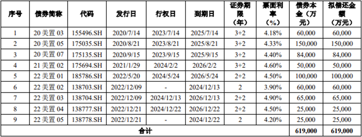 但未等小公募債發(fā)行,美的置業(yè)在年內(nèi)已將部分債務(wù)贖回。包括“20美置03”于7月14日全額兌付本息,并于7月26日提前摘牌;“20美置05”于8月21日全額兌付本息,并于8月31日提前摘牌,涉及本金金額共21億元。
