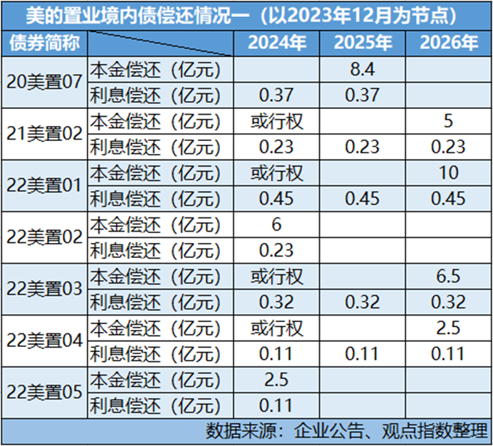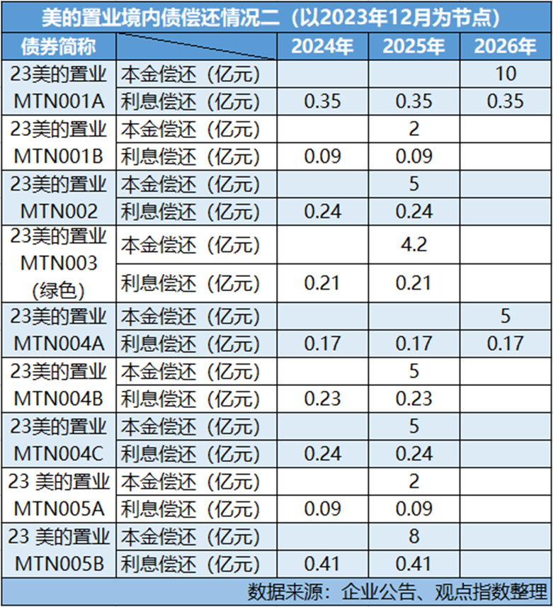 根據(jù)《美的置業(yè)集團(tuán)有限公司公司債券半年度報(bào)告(2023年)》,到2025年美的置業(yè)約有43.11億元債券本金和利息到期,到2026年需要償還的債券本息則合計(jì)超過40.63億元。小公募債通過能幫助解決大部分壓力。