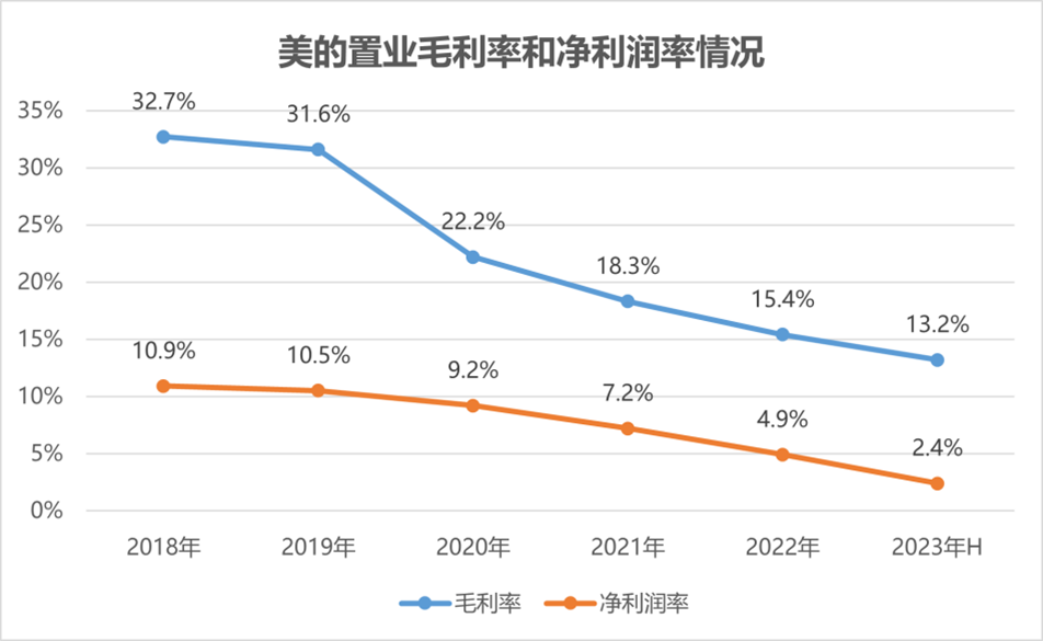 回顧美的置業(yè)過去幾年的拿地情況,該公司2022-2023兩年只有少量土儲(chǔ)補(bǔ)充,目前銷售的資源幾乎都來自較早年所拿的土地。個(gè)中產(chǎn)生的影響,已體現(xiàn)在美的置業(yè)毛利表現(xiàn)上。