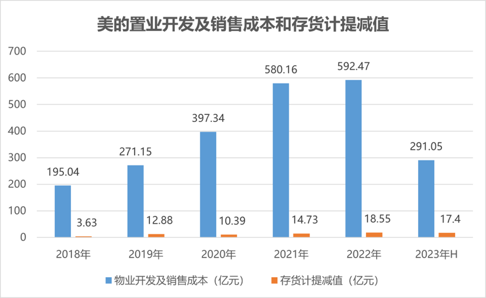 數(shù)據(jù)顯示,這兩項(xiàng)數(shù)據(jù)呈持續(xù)上升態(tài)勢(shì)。2023年上半年,美的置業(yè)就計(jì)提減值達(dá)17.4億元,幾乎達(dá)到去年全年18.55億元水平。對(duì)此,管理層在中期業(yè)績(jī)會(huì)曾提及,今年公司“會(huì)把以前想用時(shí)間換空間的物業(yè)變成現(xiàn)金流找機(jī)會(huì)”。