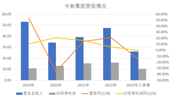 近年來,中新集團(tuán)凈利潤一直保持增長,但是增速持續(xù)下滑。2023年營收也開始增速放緩,顯然受到經(jīng)濟(jì)大環(huán)境的影響,未來增長預(yù)期不確定。