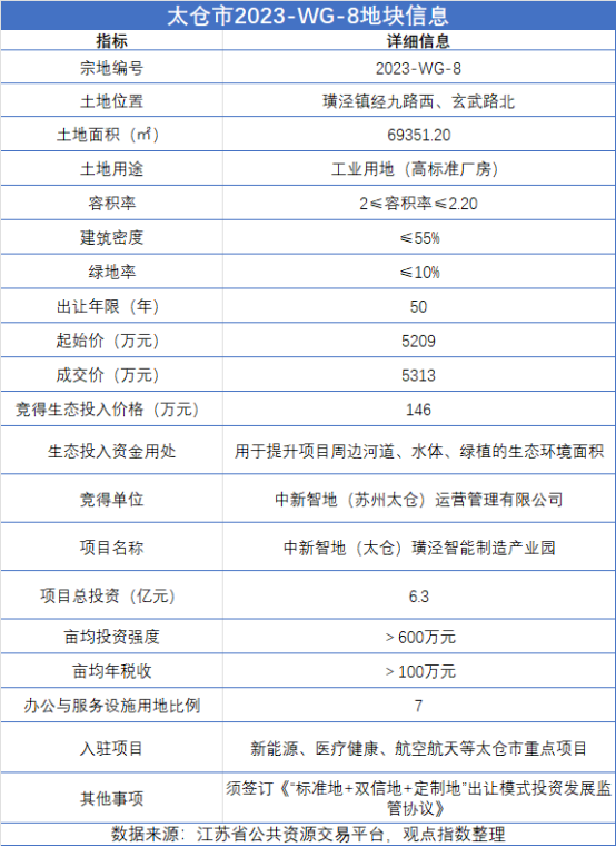 不僅如此,綠色生態(tài)方面的沉淀也擴(kuò)大了中新集團(tuán)在拿地上的優(yōu)勢。2023年上半年,中新集團(tuán)成功摘得中新智地(太倉)璜涇智能制造產(chǎn)業(yè)園項目土地,該地塊是全國首宗限地價“競生態(tài)投入”產(chǎn)業(yè)用地。