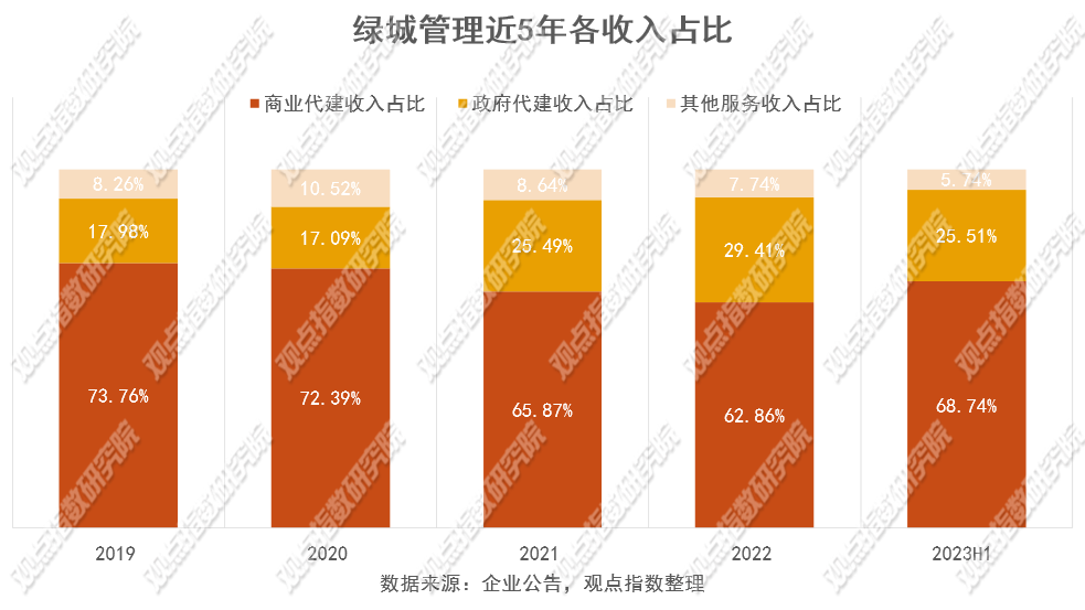觀點指數(shù)認為,除了上述三點考慮外,綠城管理業(yè)務中的國企和城投占比提升,也是對代建代銷項目謹慎選擇的結果。
