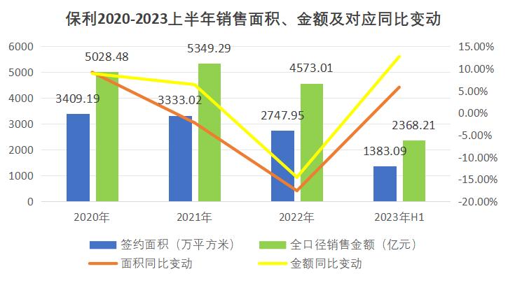 2023上半年,保利發(fā)展房地產(chǎn)銷售收入約1255.28億元,占總營收比例91.61%,較2022同期的1001.54億增長約25.33%。期內(nèi)銷售簽約面積達1383.09萬平方米,同比上升5.8%,實現(xiàn)銷售簽約金額2368.21億元,同比上升12.7%,市場占有率提升0.4個百分點至3.8%。