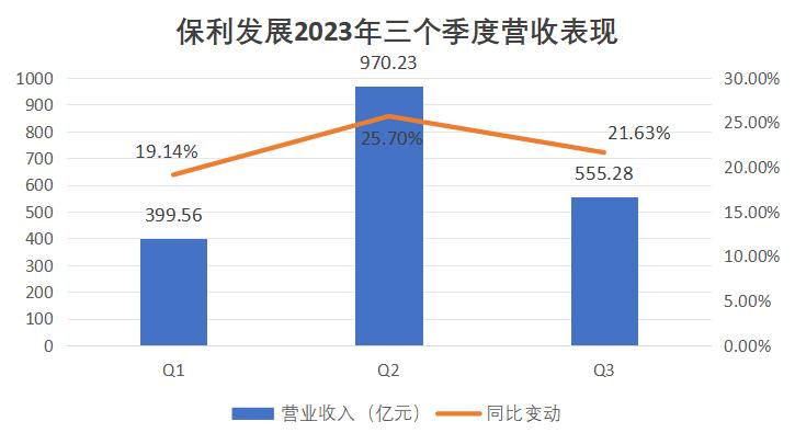 銷售表現(xiàn)反映到財報上,2023年前三個季度,保利發(fā)展營業(yè)收入為1925.06億元,同比增長23.10%。三個季度業(yè)績均同比提升,特別是Q2業(yè)績,漲幅達25.70%。