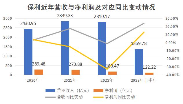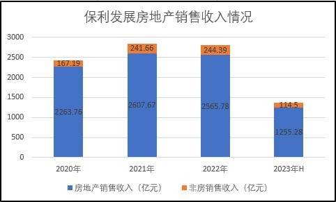 但保利多元化業(yè)務進程較為緩慢,并沒有實現(xiàn)盈利轉(zhuǎn)變,或形成行業(yè)領(lǐng)先地位。2020-2023上半年,非房地產(chǎn)銷售收入占營收比重分別為6.88%、8.48%、8.70%、8.36%,均不到10%。