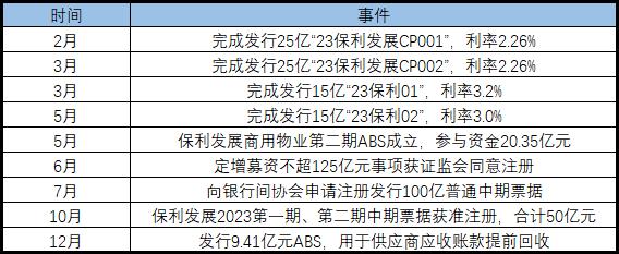 除125億定增計劃獲批之外,保利發(fā)展在融資端不斷拓寬低成本渠道。據(jù)不完全統(tǒng)計,2023年該公司完成發(fā)行50億短期融資券、30億公司債、9.41億首期資產(chǎn)支持證券。